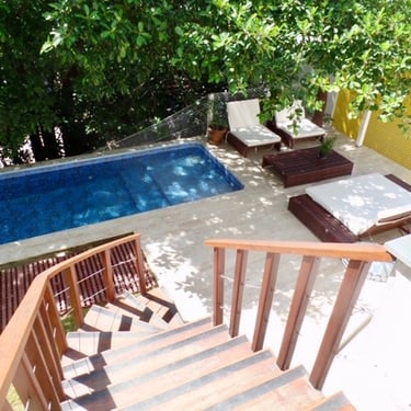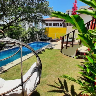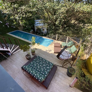 Belíssima casa! Projeto do arquiteto Carlos Salles, silenciosa, indevassada, cercada de verde e montanhas. A casa fica na parte de baixo da rua, próxima aos supermercados Zona Sul e Hortifruti. Placas solares que suprem a energia de toda a casa. No 1o piso tem uma excelente sala integrada com piscina e uma varanda que dá para a copa de uma árvore, além da vista do Morro Dois Irmãos de longe. Tem também um quarto, um banheiro social, uma despensa, área de serviço/lavanderia e uma dependência completa. Churrasqueira. Passando pela varanda da sala tem uma escada que desce para a agradável piscina com jardim da casa. A piscina é reservada e protegida pela copa da árvore. No 2o piso tem duas suítes muito bonitas, vista livre para o verde, uma agradável varanda que liga os dois quartos e uma ótima área externa do lado oposto com vista para as montanhas. Esta casa tem um andar abaixo da piscina, este espaço também é muito agradável, já tem todo o preparo hidráulico e elétrico para ser feito algo, provavelmente um ótimo escritório, ou mais uma suíte com um jardim na frente. Garagem para dois carros e a rua é muito segura. A casa tem 2 caixas d'água e uma cisterna de 5 mil litros.