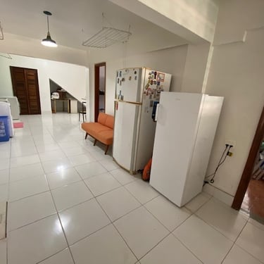 A casa, em bom estado de conservação e com manutenção descomplicada, oferece 357 m² de área construída distribuídos em três pisos bem pensados para o dia a dia e para receber bem.