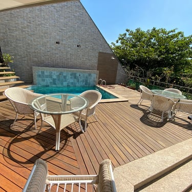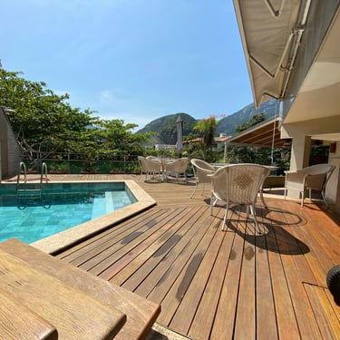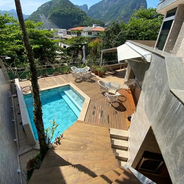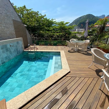 Excelente cobertura duplex em um dos melhores pontos do Jardim Oceânico, Barra da Tijuca. Localizada perto do diversificado comércio das ruas Érico Veríssimo e Olegário Maciel, esta cobertura esta também a dez minutos a pé da praia e sete minutos do metrô. São 552m2, totalmente reformada, “entrar e morar”, muito silenciosa e planta circular. No primeiro piso temos uma sala ampla com muita claridade, acesso ao terraço com uma parte coberta e outra com piscina, churrasqueira, forno a lenha, banheiro e sauna a valor. Nos fundos são três quartos, sendo duas suítes com closets e varandas e um banheiro social. Cozinha, área de serviço e despensa. No segundo piso temos outra ótima e ampla sala, uma excelente suíte de fundos, com closet e varanda, na parte a frente uo outro quarto ao lado da sala e com acesso a piscina. Numa outra parte do segundo piso temos um ótimo espaço para o staff da cobertura com dois confortáveis quartos, banheiro social e um grande terraço. Três vagas e portaria das 6h as 22h. Cobertura muito bem localizada, excelente planta circular e tudo reformado – “entrar e morar!”