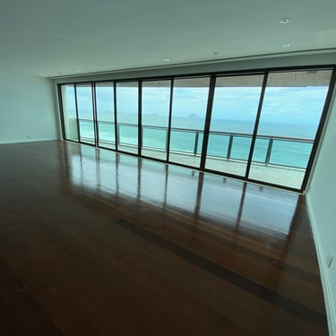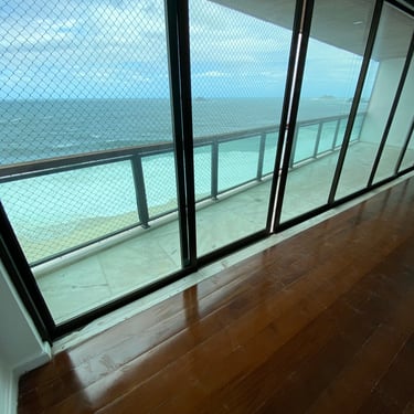 Apartamento de frente para o mar. São 230m2, muito arejado, ampla sala de estar e de jantar e um lavabo. 3 suítes com sacadas e bons armários. Copa, cozinha, área de serviço e 2 dependências completas. 3 vagas na escritura, box de guardados na garagem. Portaria 24 horas e boa segurança. Academia de ginástica, salão de festas, piscina e brinquedoteca.