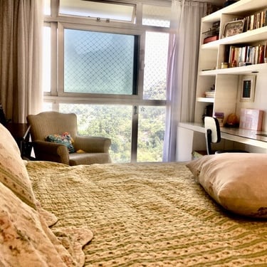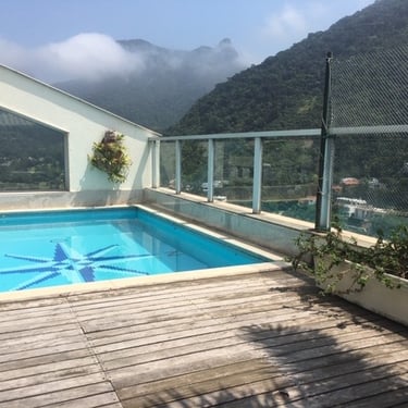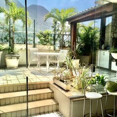 Excelente cobertura, próxima do shopping, do metrô e da praia e em um condomínio com muito espaço, lazer e segurança. São 230 m2 de área edificada, mas com o terraço chega a uns 310 m2. No primeiro piso temos uma ampla sala de estar e de jantar com uma belíssima vista das montanhas e um lavabo. São cinco confortáveis quartos, sendo que três deles são suítes e dois com closets e um banheiro social. Ainda temos cozinha, área de serviço, uma dependência completa e uma despensa. Acesso ao segundo piso tanto pela sala, quanto pela área de serviço. No segundo piso, na parte coberta temos uma agradável e ampla sala com bar, uma sauna seca e uma sala de ginástica com a mesma belíssima vista verde das montanhas. Na parte externa temos uma ótima churrasqueira, amplo espaço e uma excelente piscina a mais de cem metros de altura com uma vista deslumbrante do bairro. São duas vagas na escritura, portaria 24h e no prédio tem saunas seca e a vapor, salão de festas e uma boa academia de ginástica. O condomínio é conhecido pela sua ótima infra-estrutura e segurança. São quatro piscinas com bons bares, cinco quadras de tênis, quatro quadras poliesportivas, áreas para crianças, áreas para cães e muito espaço. Tudo cercado por belas montanhas.