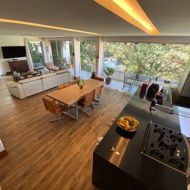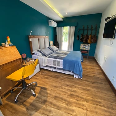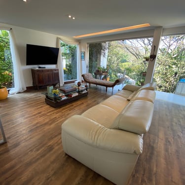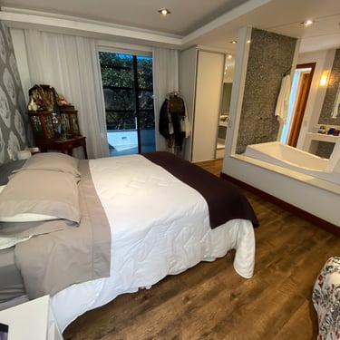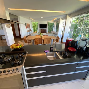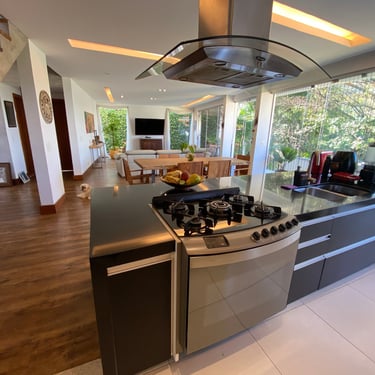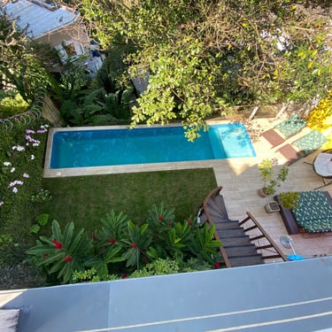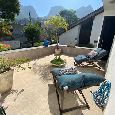 Belíssima casa! Projeto do arquiteto Carlos Salles, silenciosa, indevassada, cercada de verde e montanhas. A casa fica na parte de baixo da rua, próxima aos supermercados Zona Sul e Hortifruti. Placas solares que suprem a energia de toda a casa. No 1o piso tem uma excelente sala integrada com piscina e uma varanda que dá para a copa de uma árvore, além da vista do Morro Dois Irmãos de longe. Tem também um quarto, um banheiro social, uma despensa, área de serviço/lavanderia e uma dependência completa. Churrasqueira. Passando pela varanda da sala tem uma escada que desce para a agradável piscina com jardim da casa. A piscina é reservada e protegida pela copa da árvore. No 2o piso tem duas suítes muito bonitas, vista livre para o verde, uma agradável varanda que liga os dois quartos e uma ótima área externa do lado oposto com vista para as montanhas. Esta casa tem um andar abaixo da piscina, este espaço também é muito agradável, já tem todo o preparo hidráulico e elétrico para ser feito algo, provavelmente um ótimo escritório, ou mais uma suíte com um jardim na frente. Garagem para dois carros e a rua é muito segura. A casa tem 2 caixas d'água e uma cisterna de 5 mil litros.
